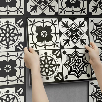 Impermeável Slip-Resistant PVC Auto-adesivo Falso Tile Adesivos 30x30cm Minimalista para Cozinha Hotel Banheiro Decalques de parede Preto